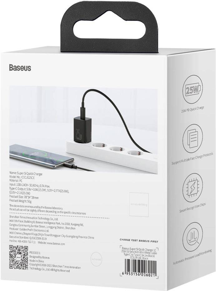 Аккумулятор для электроинструмента Baseus Сетевое зарядное устройство Super Si 25W EU Black