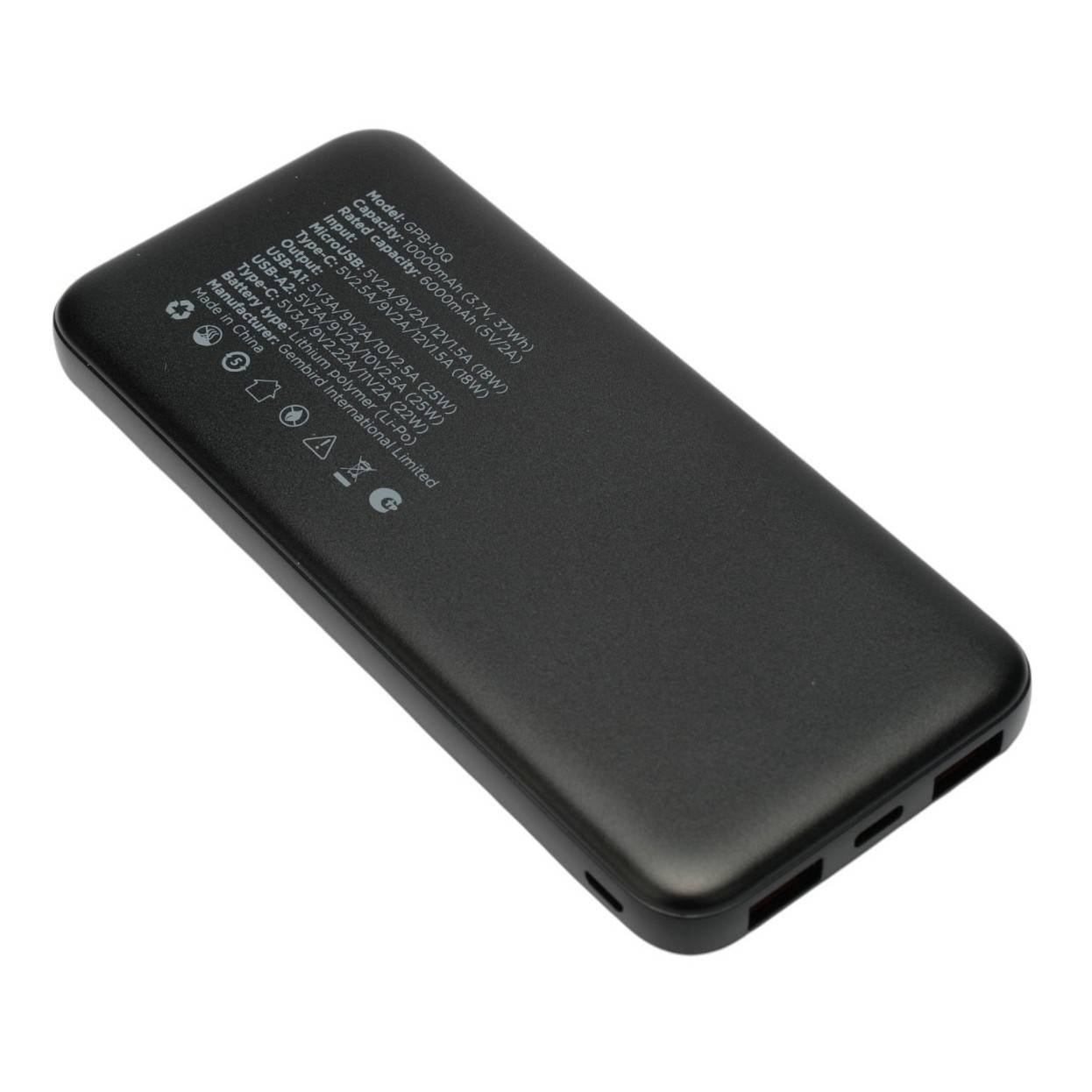 Внешний аккумулятор Портативный аккумулятор, 10000мАч, QC/PD, дисплей, черный (GPB-10Q)