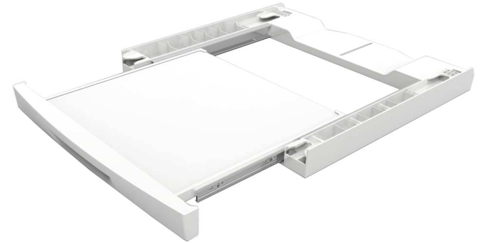 Аксессуар для бытовой техники KORTING Аксессуары KORTING/ Cоединительный элемент (монтажный комплект) для стиральной (модели KWM 57T1490 и KWM 60F12105) и сушильной машин (KD 60T8), пластик, выдвижная полка, цвет - белый (DSK 150)