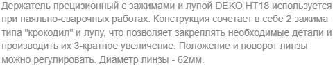 Держатель прецизионный с зажимами и лупой DEKO HT18, 60мм, 3х увеличение