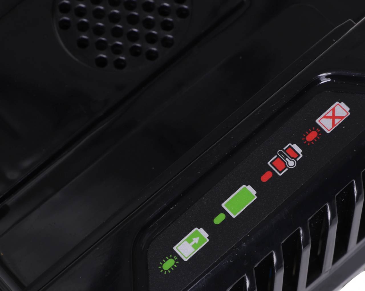 Зарядное устройство (модель G82C) - применяется для зарядки аккумуляторов Greenworks с напряжением 82 вольта. Зарядка поддерживает функцию быстрой зарядки и имеет активное охлаждение - кулер. Чип для защиты от перезарядки.
