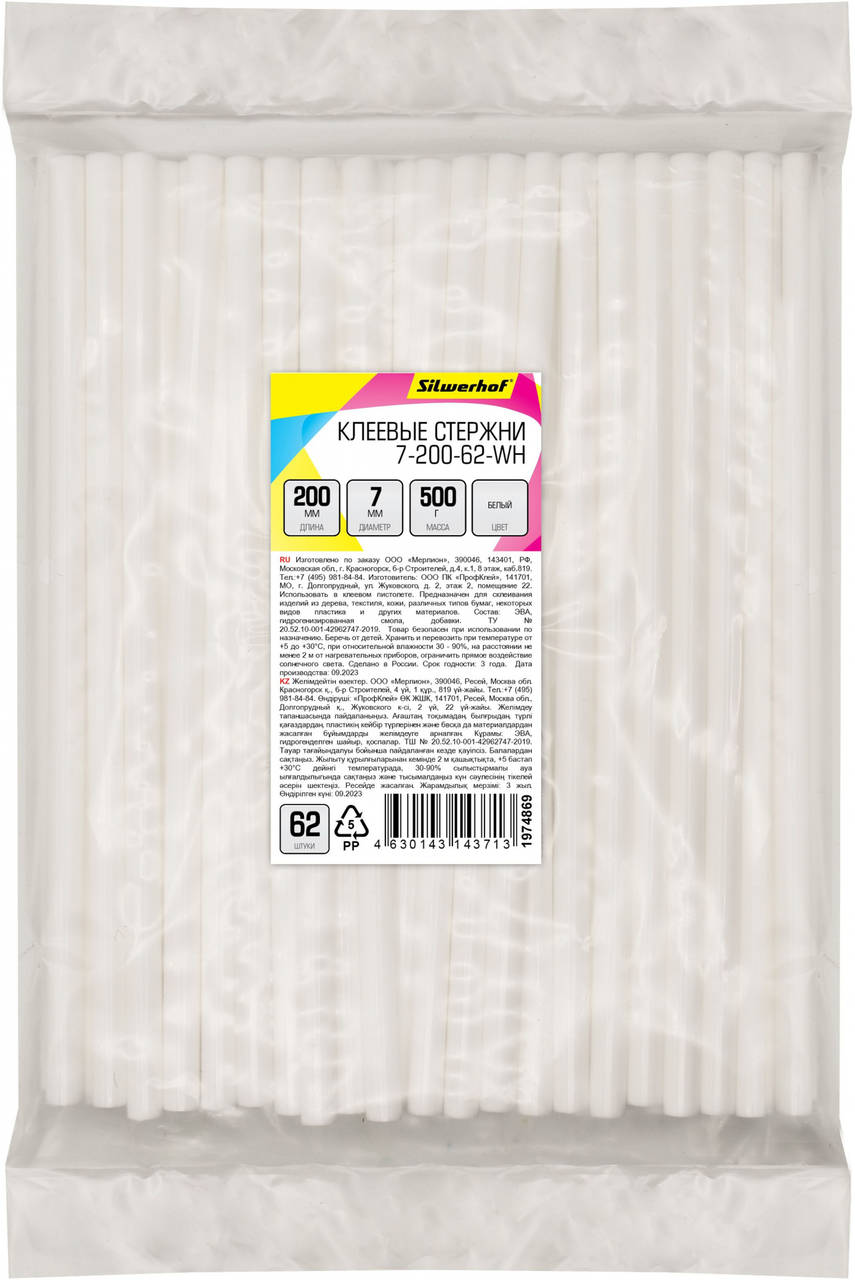 Аксессуар для электроинструмента SILWERHOF Cтержни клеев. для клеев.пист. 7-200-62-WH дл.200мм D7мм белый упак:62шт
