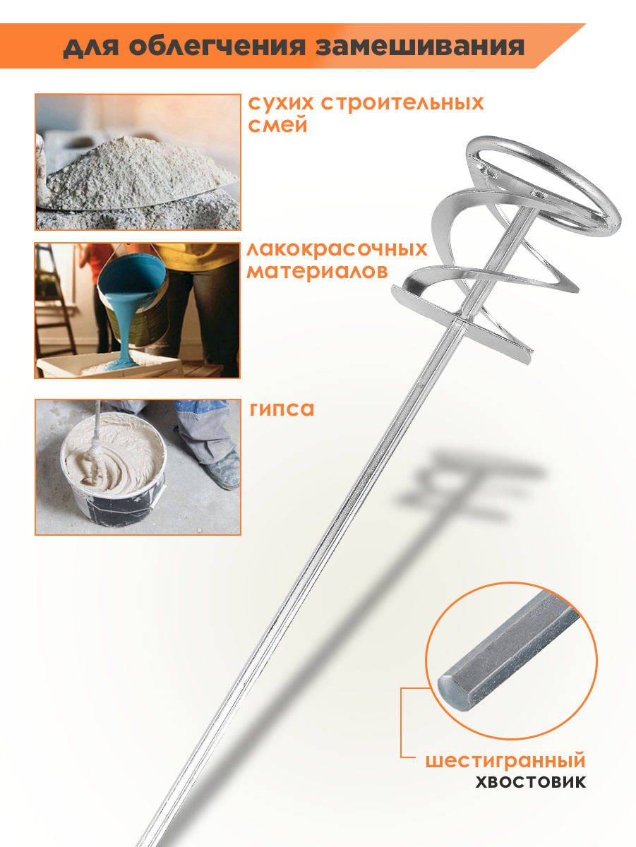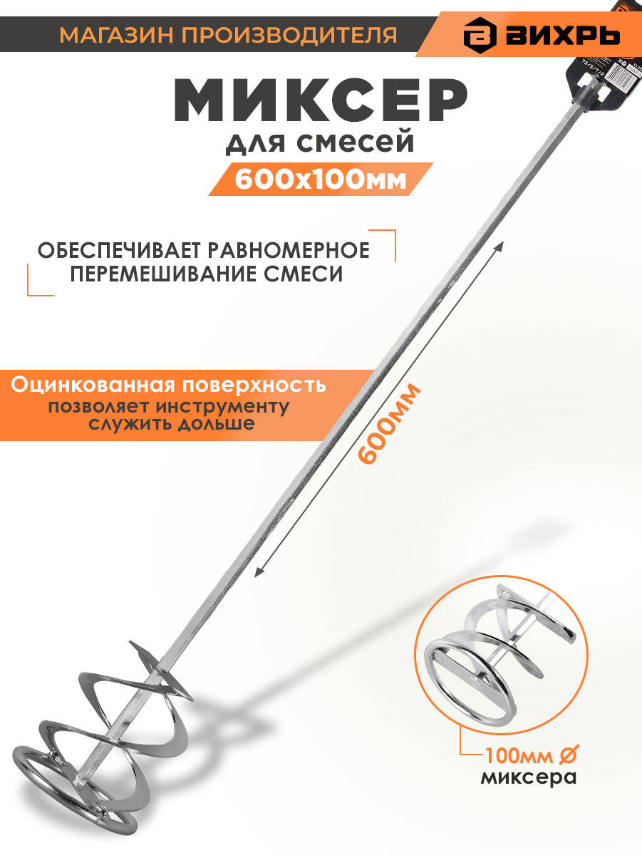 Аксессуар для электроинструмента ВИХРЬ Миксер строит. для дрелей 73/3/7/2 серебристый