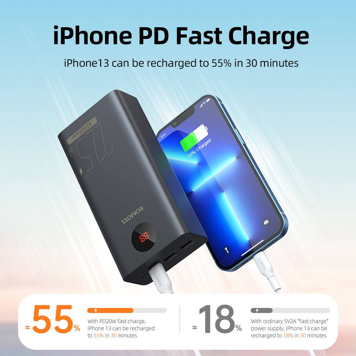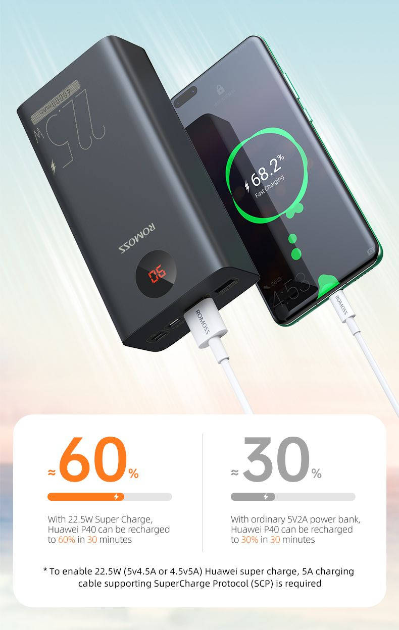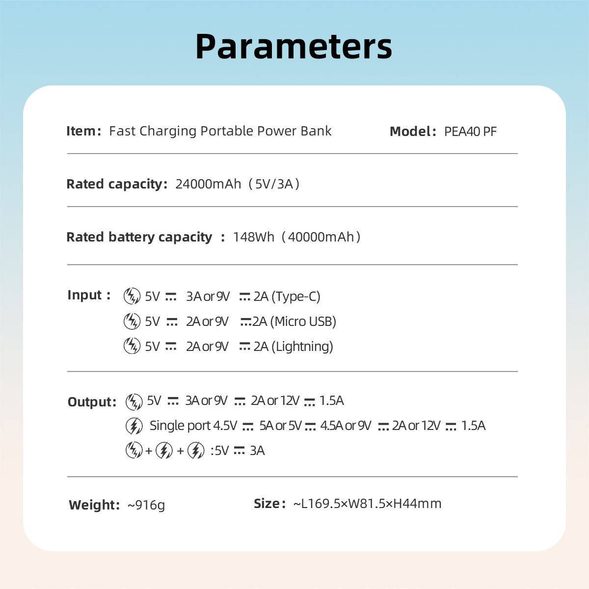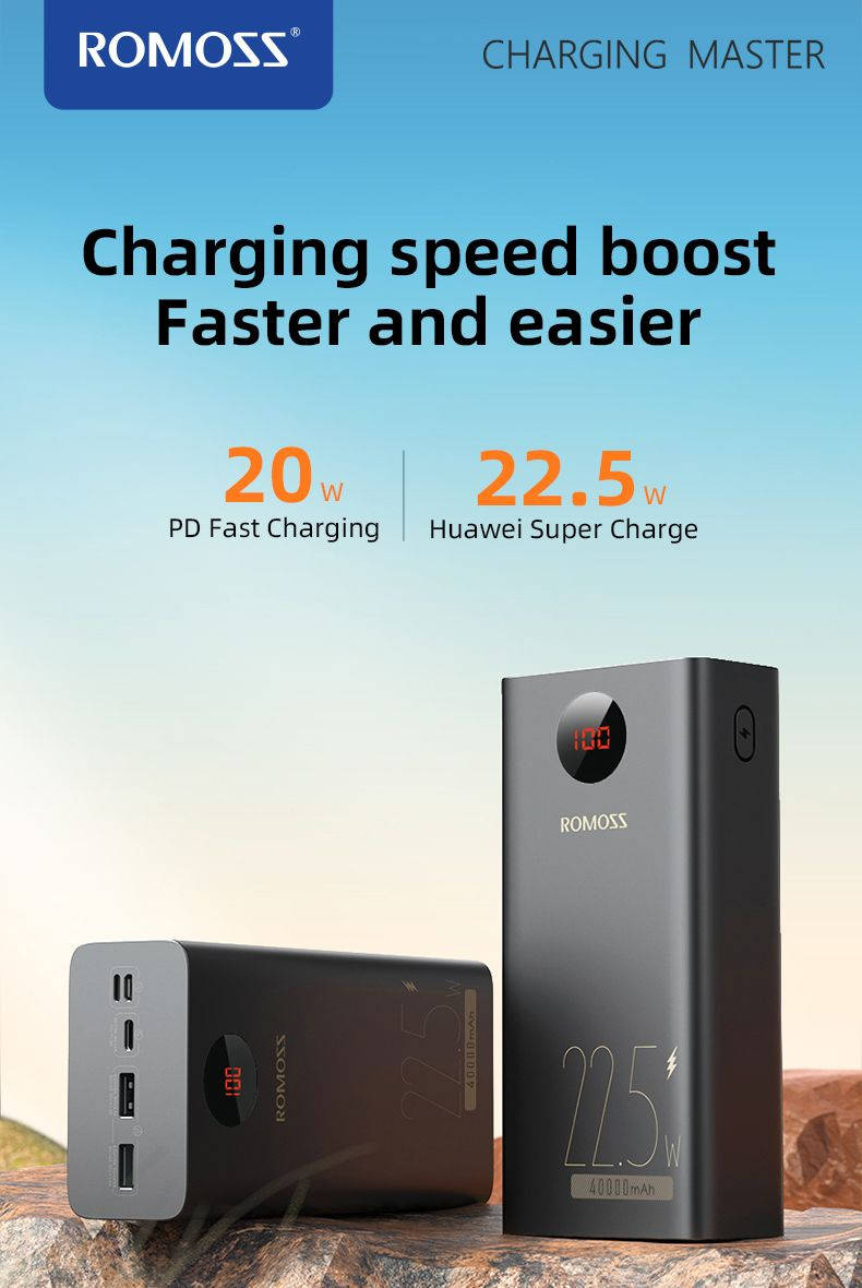 Аксессуар для планшета Romoss Мобильный аккумулятор PEA40PF 40000mAh QC3.0 22.5W 5A 2xUSB-A/USB-C черный