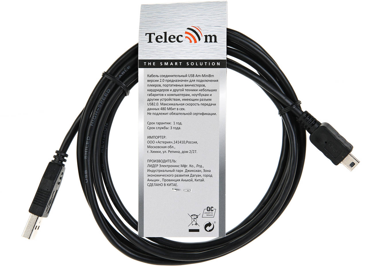 Аксессуар для смартфона Telecom USB 2.0 Type-AM - miniUSB 1.8м