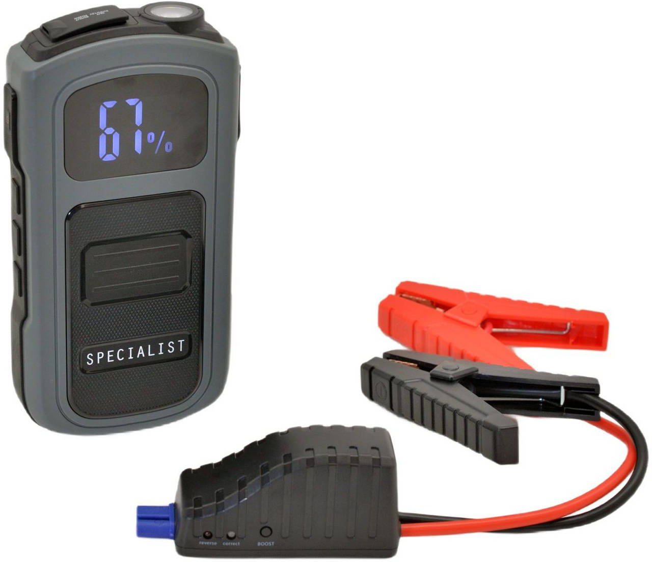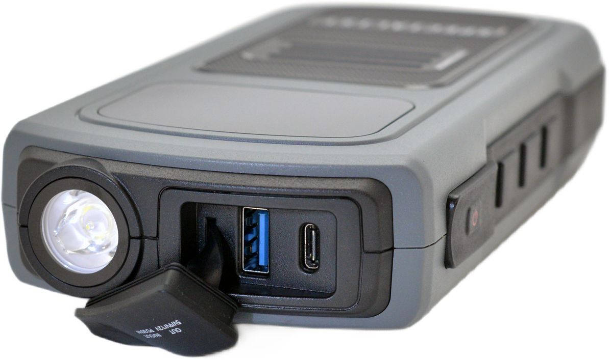 | Особенности: | Мощный выход для запуска 12-вольтового бензинового двигателя до 4.5 л. и дизель до 2.5 л. Мощный светодиодный фонарь с тремя режимами работы. |