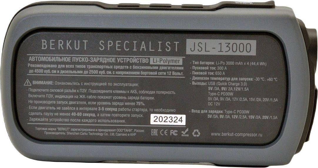 Автоаккумулятор, зарядное устройство BERKUT JSL-13000 ББ-00003084