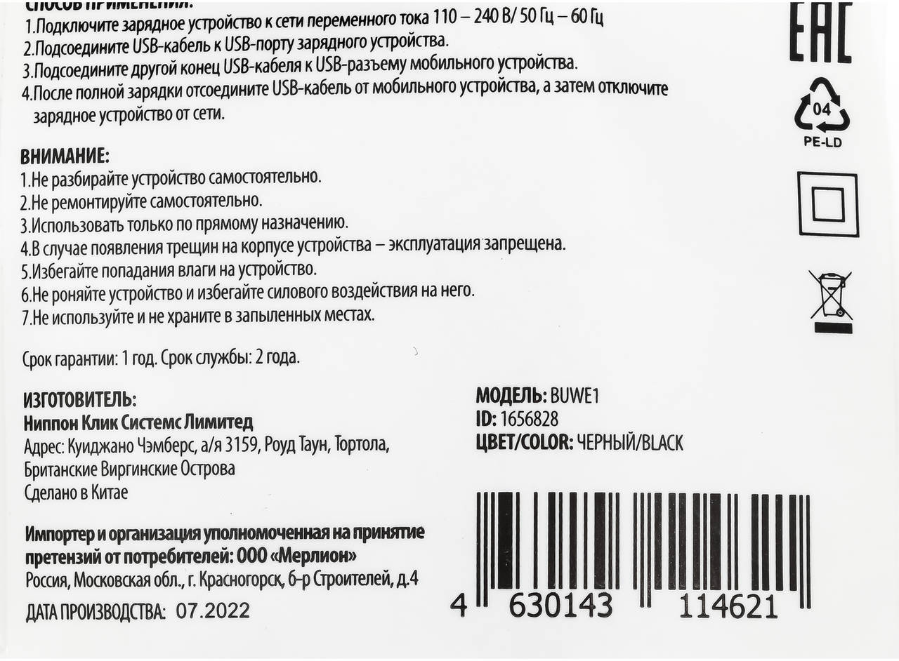 PartNumber/Артикул Производителя:BUWE10S200BK