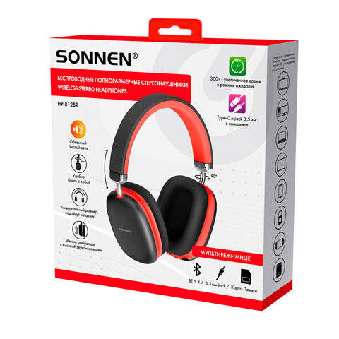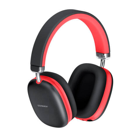 Беспроводные наушники SONNEN Наушники беспроводные накладные полноразмерные раздвижные мультирежимные, HP-B12BR, Bluetooth 5.4, черный/коралловый, 514128