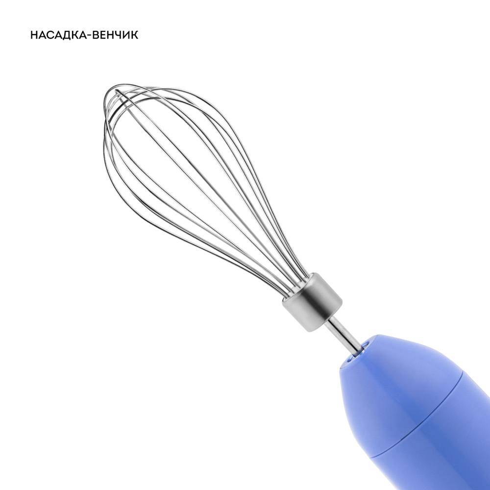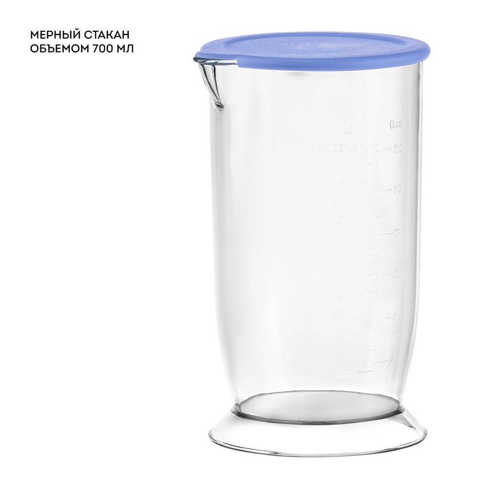 Данный электроприбор комплектуется мерным стаканом, насадкой-венчиком, насадкой-блендером.