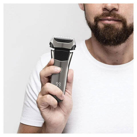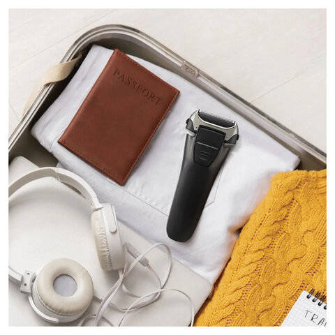 В корпус интегрирован выдвижной триммер шириной 25,5 мм, который позволяет легко подравнять усы, придать форму бороде или сделать чёткий контур. Благодаря компактным размерам (66 х 46 х 158 мм) и лёгкому весу всего 90 грамм, бритву удобно брать с собой в поездки, командировки или путешествия. В комплекте идёт защитная крышка, которая предохраняет лезвия при хранении и транспортировке.