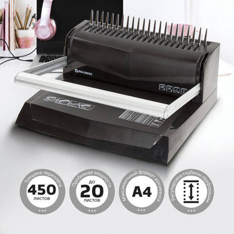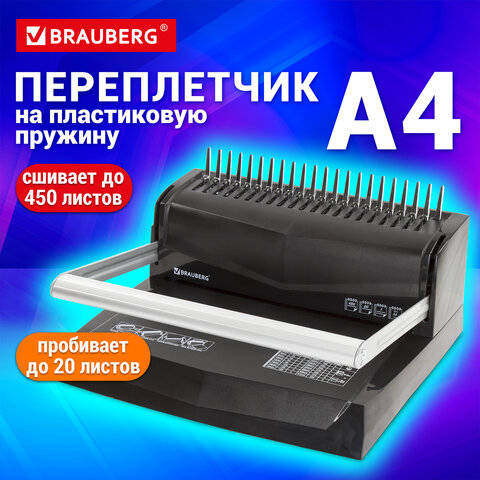 Брошюратор Brauberg Переплетная машина для пластиковой пружины B20, пробивает до 20 листов, сшивает до 450 листов, 530960