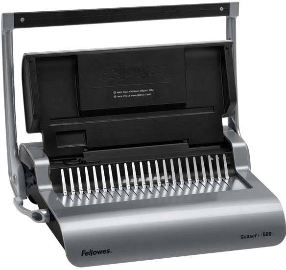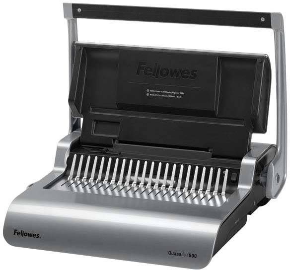 Быстрый переплетчик Fellowes Quasar+ с механической перфорацией. Характеристики Quasar+ отвечают требованиям для регулярного использования в среднем или большом офисе. Максимальная толщина сшиваемой брошюры может быть до 500 листов, а одновременная пробивка до 25 листов 80 г/м² позволит сделать брошюру за считанные минуты.Переплетчик Fellowes Quasar+ прост и удобен в использовании. Широкая ручка под хват обеими руками намного снизит ваше усилие при перфорации листов. Вертикальная загрузка документа позволит автоматически выравниваться листам, чтобы не допускать случайный брак при перфорации. Наклон зубцов в 15 градусов позволит надежно фиксировать и раскрывать пружину.Селектор диаметра пружин и толщины документа упрощает выбор подходящей пружины для переплета Переплет получится симметричным и аккуратным за счет использования селектора формата А4-А5.Переплетчик имеет плоский корпус и удобен для хранения в вертикальном положении.