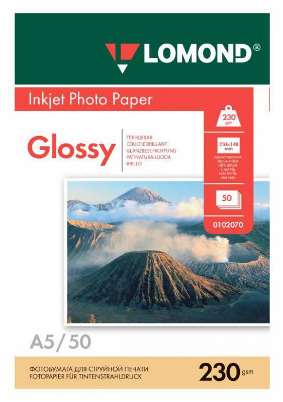 Фотобумага Lomond 0102070 A5/230г/м2/50л./белый глянцевое для струйной печати