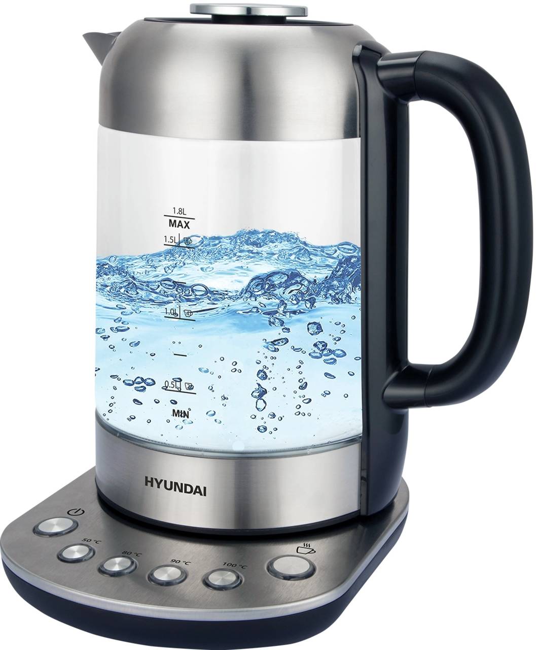 Чайник/Термопот HYUNDAI Чайник электрический HYK-G8407 1.8л. 2200Вт черный/прозрачный корпус: стекло