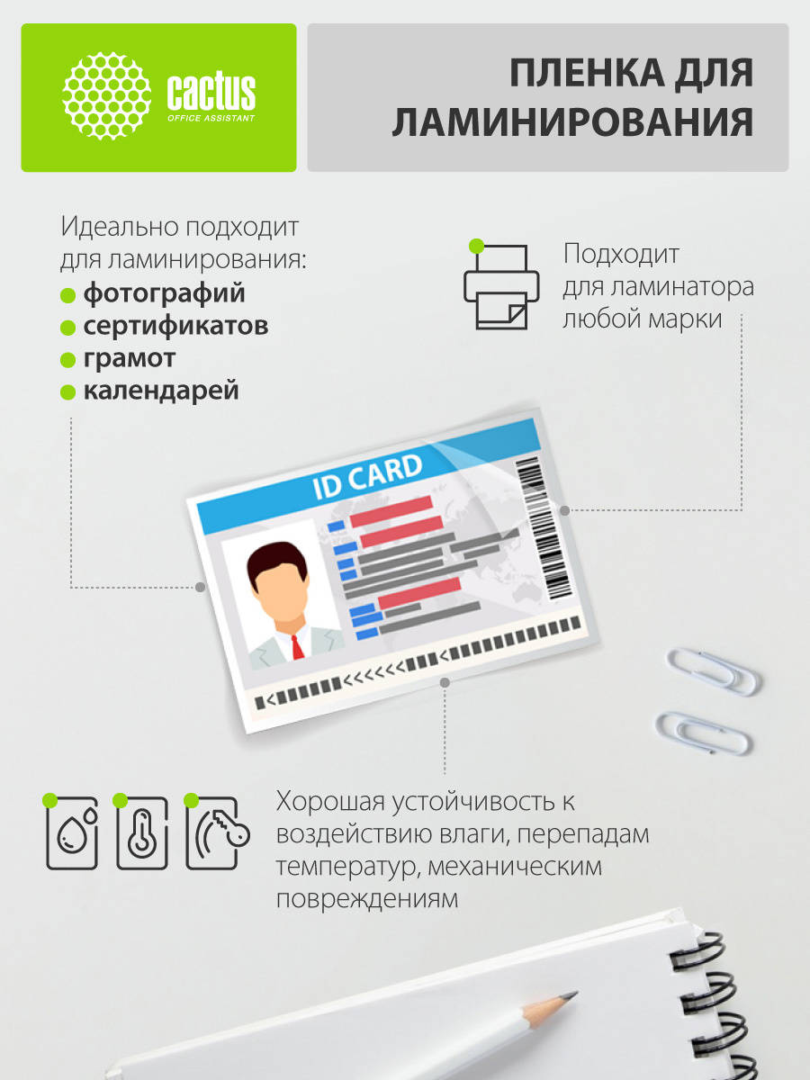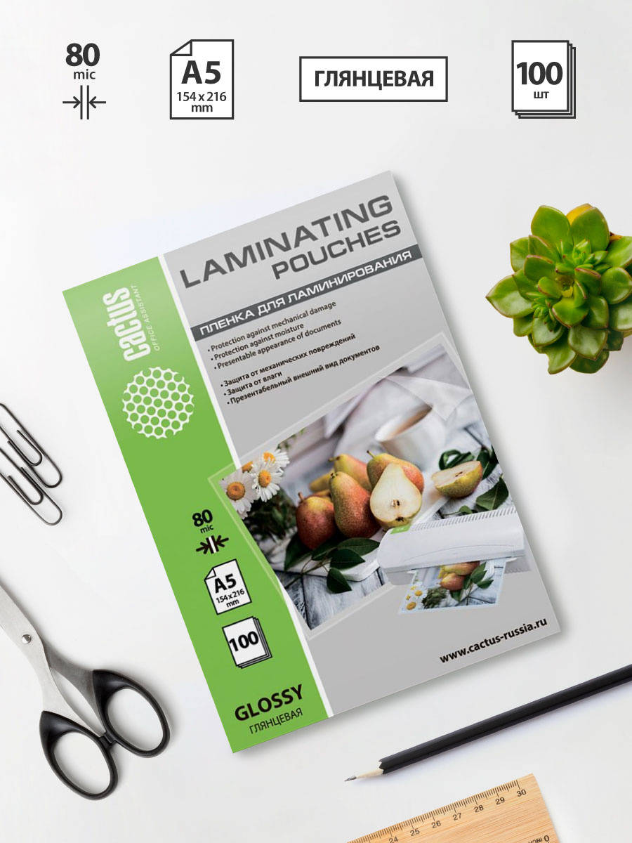 Для ламинатора CACTUS Пленка для ламинирования 80мкм A5 глянцевая 154x216мм CS-LPGA580100