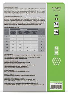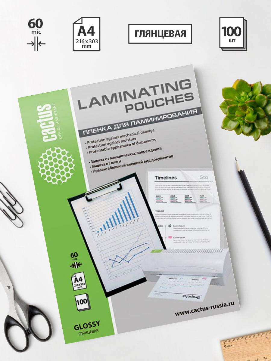 Для ламинатора CACTUS Пленка для ламинирования 60мкм A4 глянцевая 216x303мм CS-LPGA460100