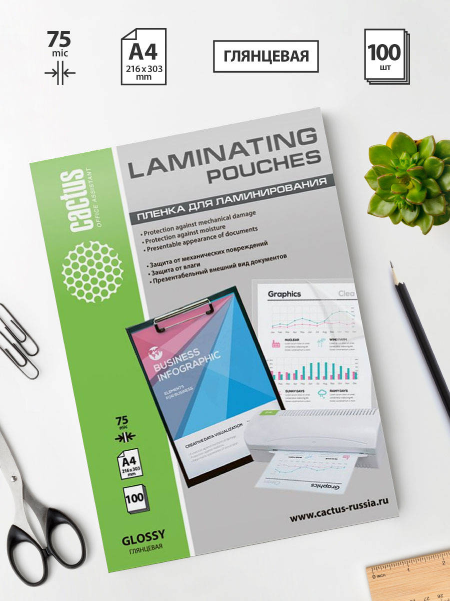 Для ламинатора CACTUS Пленка для ламинирования 75мкм A4 глянцевая 216x303мм CS-LPGA475100