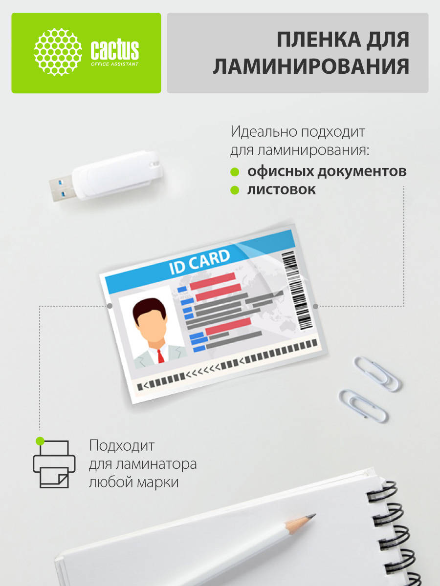 Для ламинатора CACTUS Пленка для ламинирования 75мкм A4  глянцевая 216x303мм CS-LPGA4751002450685-12450685-22450685-32450685-42450685-5