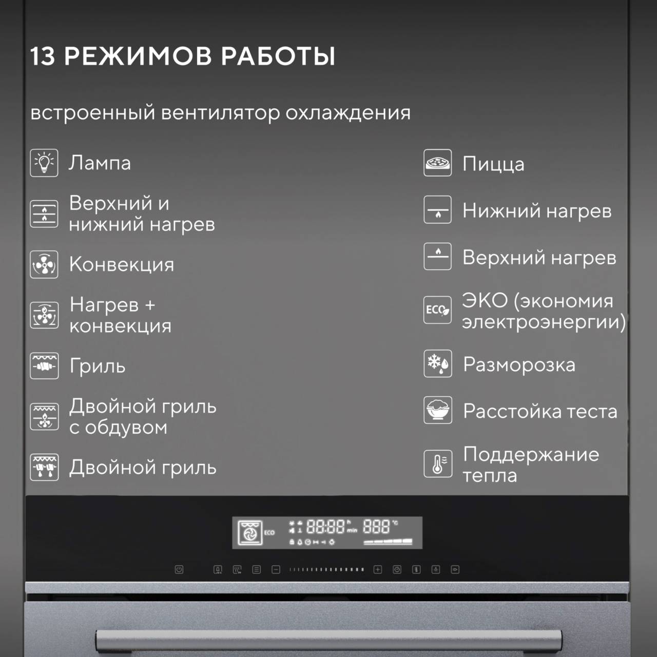Духовой шкаф HYUNDAI Электрический HEO 6773 IX черный/нержавеющая сталь