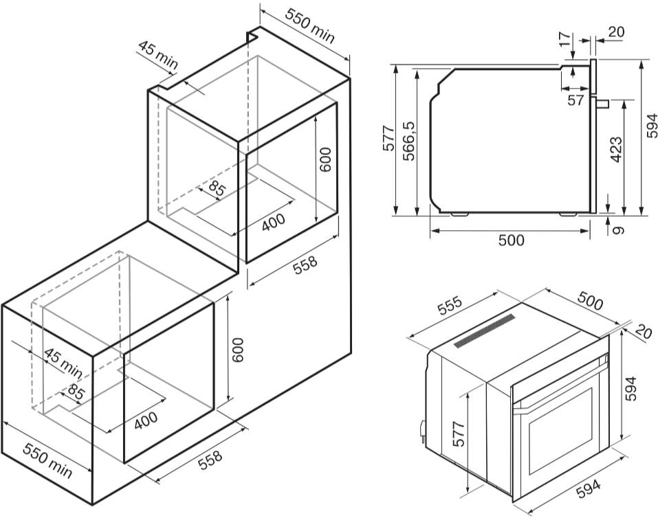 | Режимы духовки: | Верхний и нижний нагрев. Нижний нагрев. Гриль. Освещение |