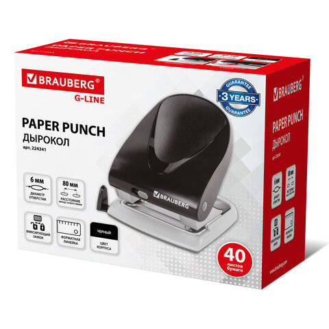 Дырокол Brauberg "Jet", до 40 листов, черный, 224341