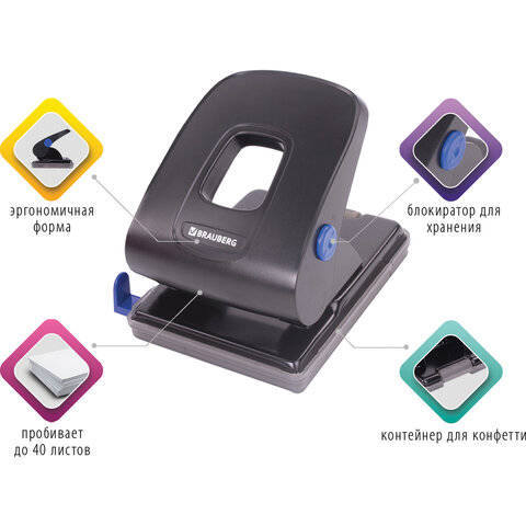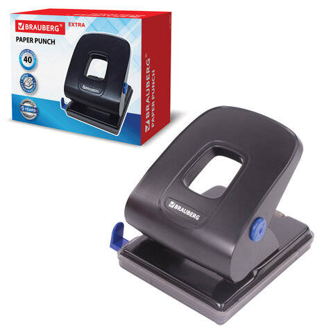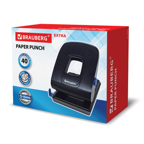 Дырокол Brauberg металлический "Extra", до 40 листов, черный, 229093