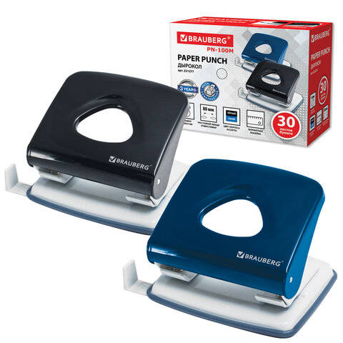 Дырокол Brauberg металлический "PN-100M", до 30 листов, ассорти , 221277
