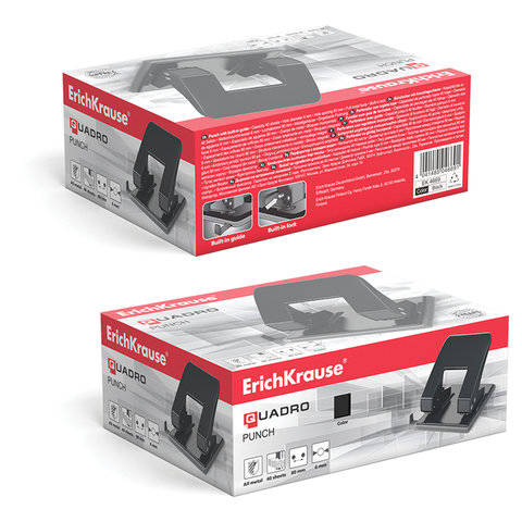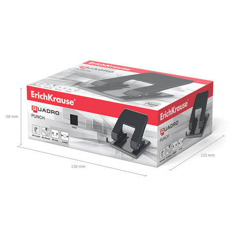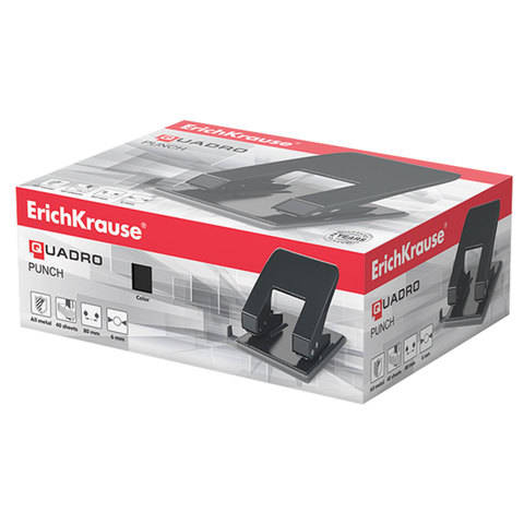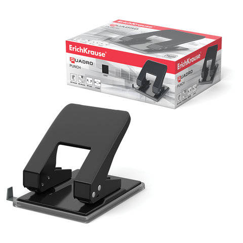 Дырокол Erich Krause металлический "Quadro", до 40 листов, черный, 4669