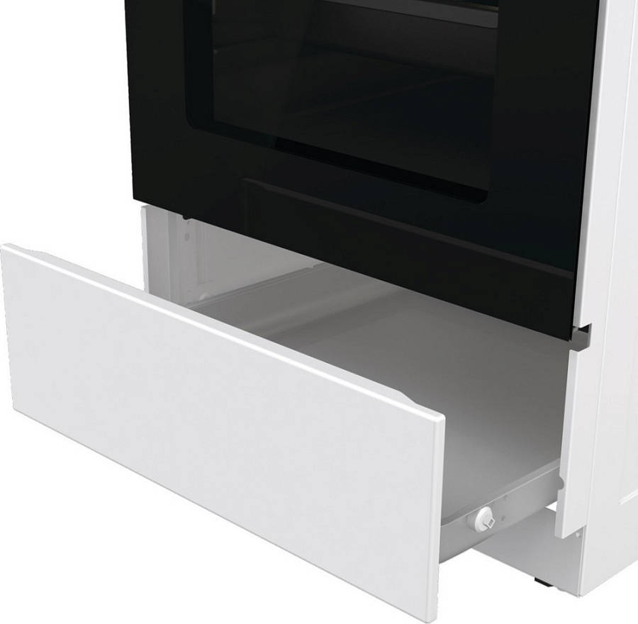 Комбинированная плита Горенье GK5A21WH оснащена электрическим духовым шкафом с большим внутренним объёмом BigSpace 68 л. В конструкции камеры с пиролитической эмалью SilverMatte применён фирменный сводчатый потолок HomeMADE Plus. Электрический гриль с большим и малым ТЭНом, а также нижним нагревом создают несколько вариантов приготовления, в том числе различные виды гриля, программу «пицца» и функцию очистки AquaClean.