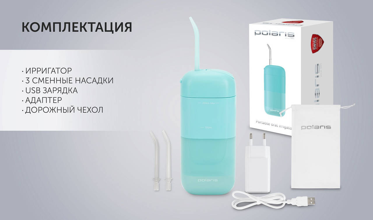 Ирригатор POLARIS PWF 1002 T импульсн. 3насад. бирюзовый