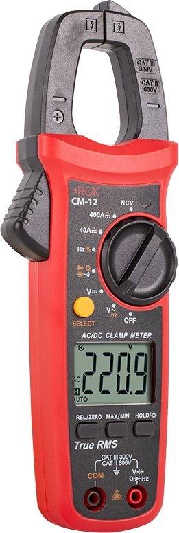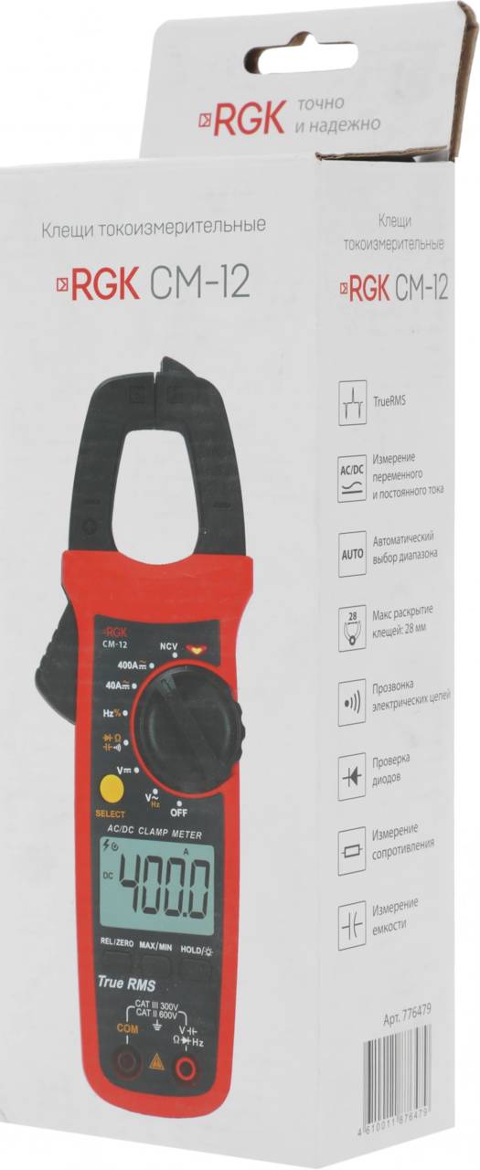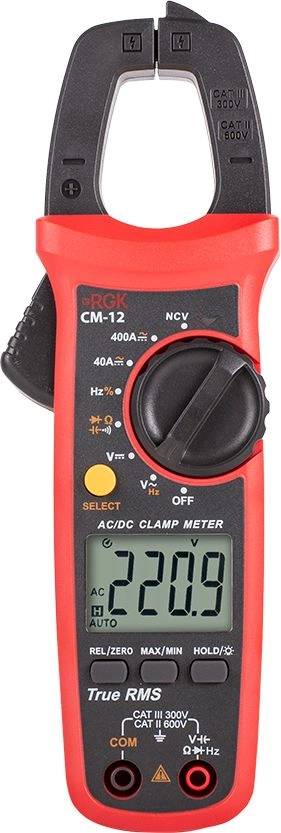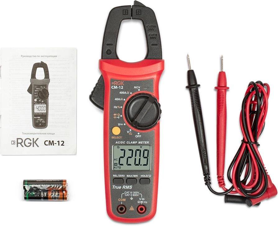 Измерительная техника RGK Клещи токоизмерительные CM-12 цифр. измер.ток:переменный/постоянный красный/черный