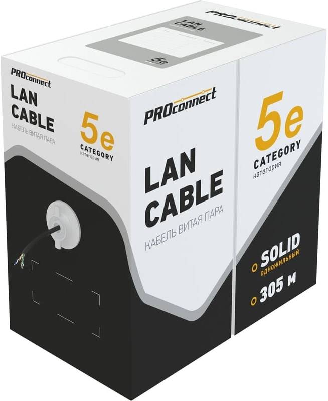 Кабель медный Proconnect Кабель информационный 01-0146-3 кат.5E FTP 4 пары 24AWG PE внешний 305м черный
