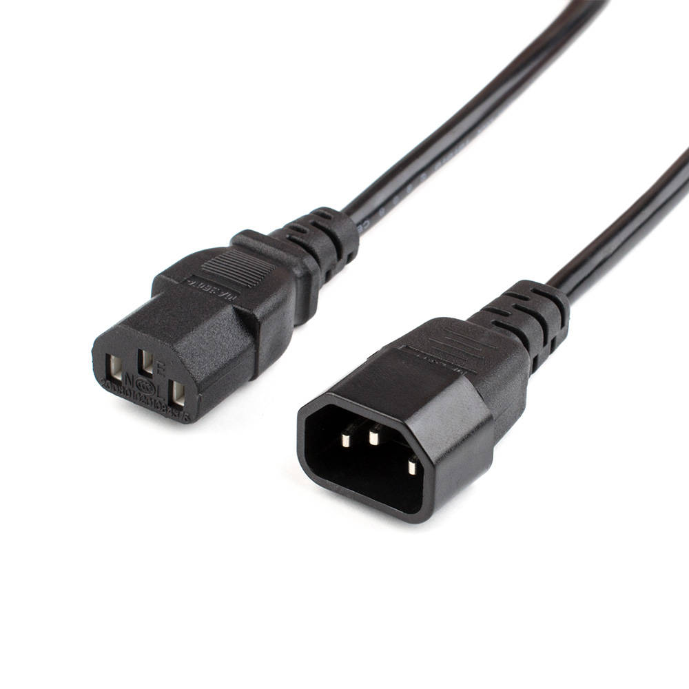 Кабель питания для подключения устройств с разъемом C14 (компьютеров, активного сетевого оборудования, блоков розеток, источников бесперебойного питания — ИБП и другого электрооборудования класса I или II) к электрическим разъемам C13 для обеспечения их электропитания или для соединения с другим оборудованием.Материал разъемов — ПВХ черного цвета. Материал контактов в разъемах — латунь, покрытая цинком.Характеристики:Номинальное напряжение: ~ 220 В (переменный ток)Максимальное допустимое напряжение: ~ 250 В (переменный ток)Максимальный ток нагрузки: 10 АСечение проводника: 3×0.75 мм²Макс. рабочая температура: 75°С