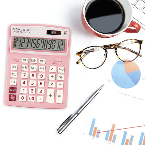 Калькулятор Brauberg настольный EXTRA PASTEL-12-PK , 12 разрядов, двойное питание, РОЗОВЫЙ, 250487