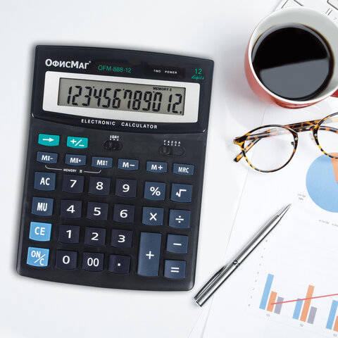 Калькулятор ОФИСМАГ настольный OFM-888-12 , 12 разрядов, двойное питание, 250224