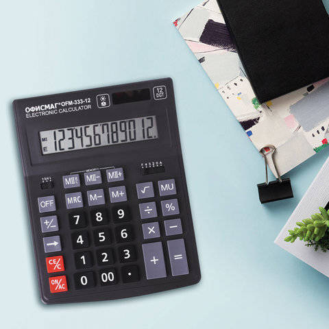 Калькулятор ОФИСМАГ настольный OFM-333 12 разрядов, двойное питание, ЧЕРНЫЙ, 250462