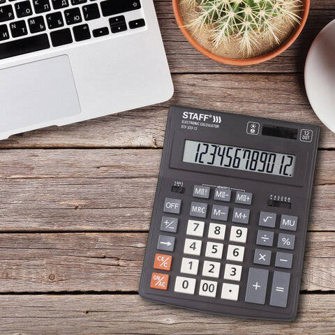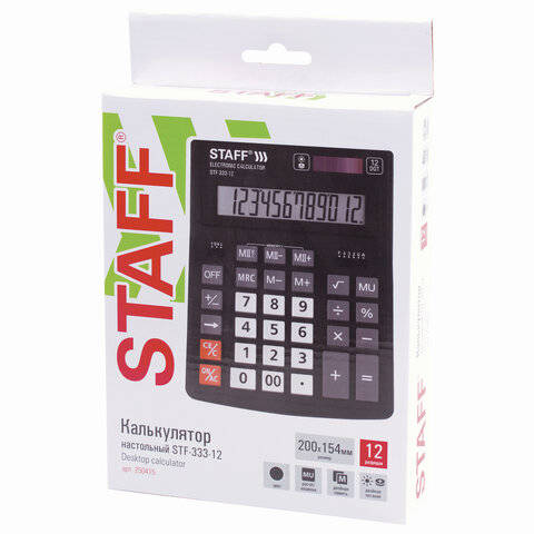 Калькулятор Staff настольный PLUS STF-333 , 12 разрядов, двойное питание, 250415