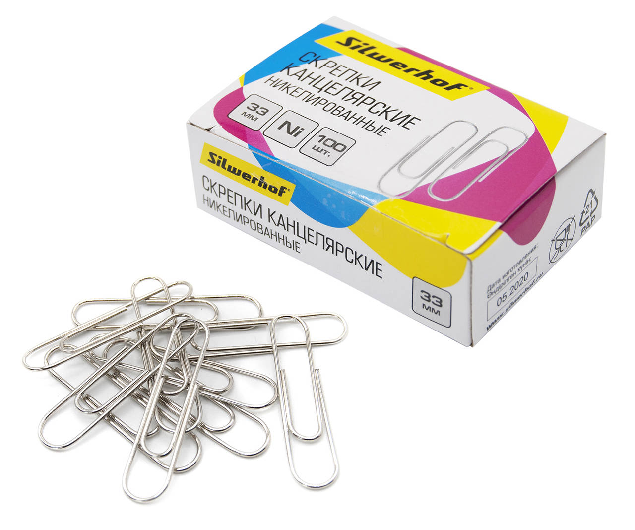 Канцтовар SILWERHOF Скрепки 491043 никель 33мм картонная коробка