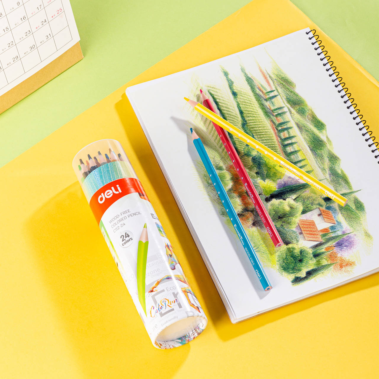 Карандаш DELI Карандаши цветные EC112-24 Enovation трехгранные пластик 24цв. карт.тубус