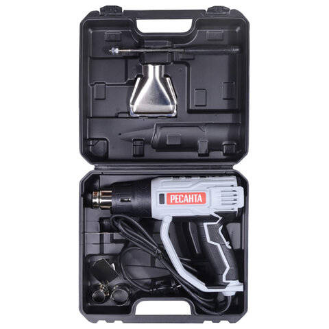 Клеевой пистолет сетевой РЕСАНТА, 2000 Вт, насадки 4 шт., 600 градусов, расход воздуха 500 л/мин, 75/2/1
