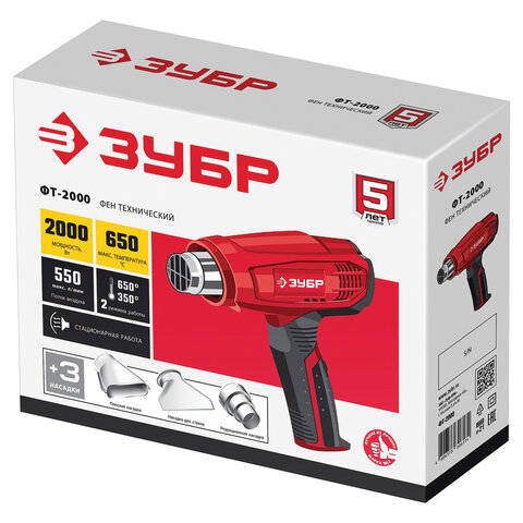 Клеевой пистолет ЗУБР сетевой, 2000 Вт, насадки 3 шт., 650 градусов, расход воздуха 550 л/мин, ФТ-2000