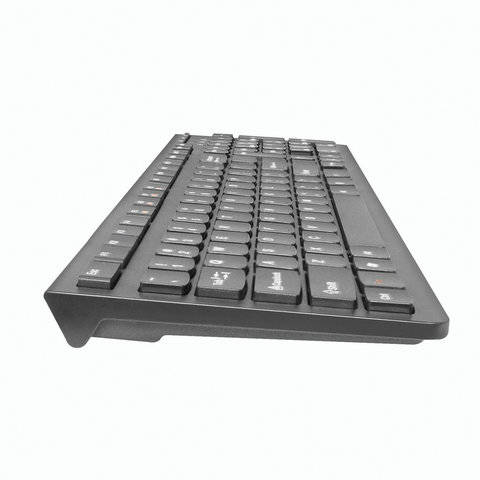 Описание:USB, радиус 10м, клавиатура беспроводная, мембранная, slim, доп клавиши 12(+FN) питание клав. 2-AAА, мышь 2-AАA, 800-1600dpi, черный