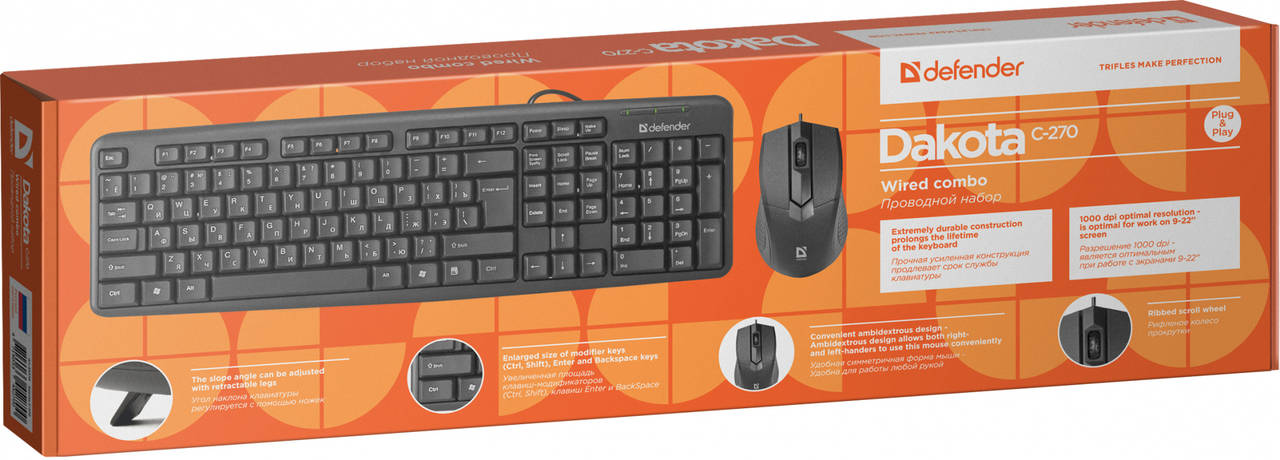 Комплект (клавиатура+мышь) DEFENDER Клавиатура + мышь Dakota C-270 клав:черный мышь:черный USB