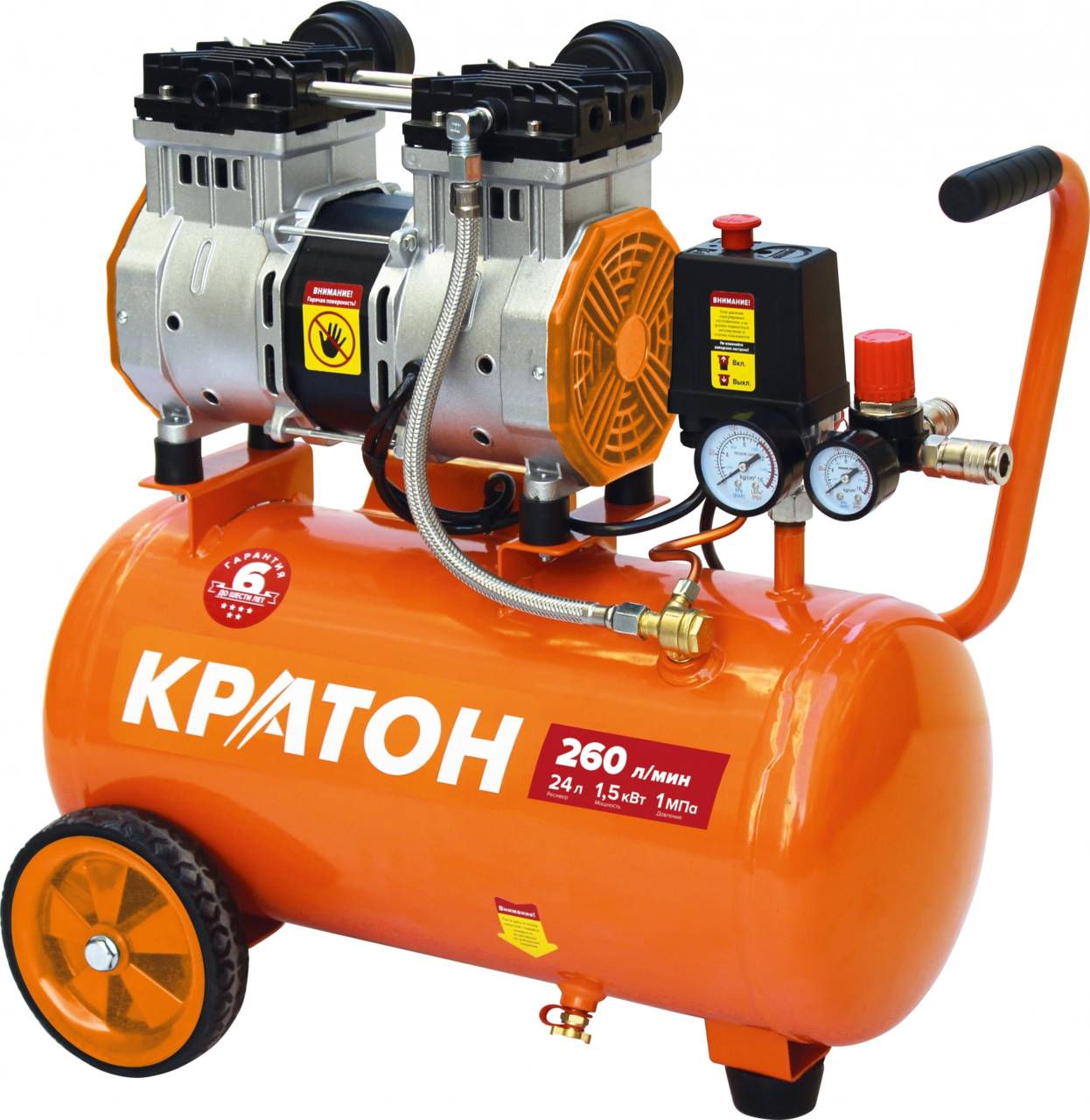 Компрессор пневматический КРАТОН Компрессор поршневой AC-260-24-OFHS безмасляный 260л/мин 24л 1500Вт оранжевый