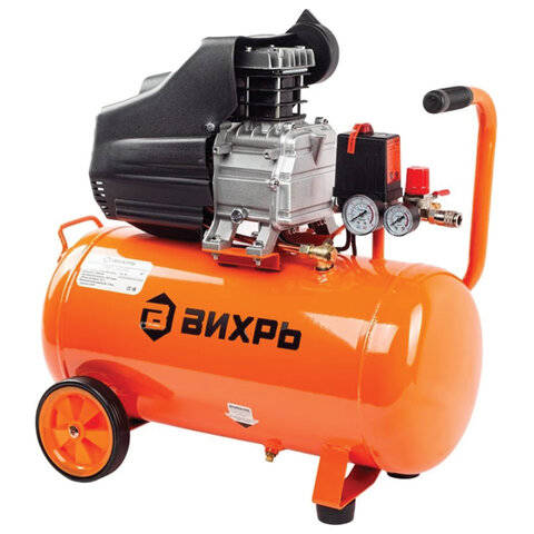 Автокомпрессор ВИХРЬ Компрессор КМП-300/50, 2000 Вт, рабочее давление 8 бар, объем 50 л, 300 л/мин, 2,7 л.с., 74/3/4