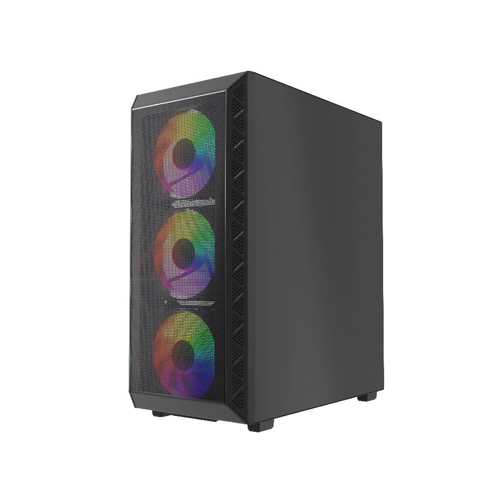 Размеры (ШхВхГ): 195x450x395mm, SPCC 0.45mm.CPU кулер 160мм (макс),VGA 310mm, PSU up to 200mm. Слоты: 3,5"х2, 2,5"х2, 7xPCI. Охлаждение: Front: 3х120мм FRGB (Fixed) fans (inc.). Rear:1х120мм FRGB fan (inc.). I/O Panel: USB3.0 x 1 / USB2.0 x 2 , HD audio.