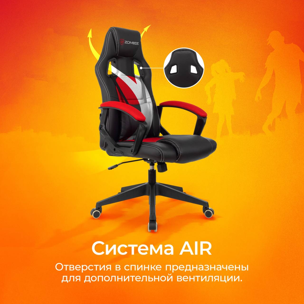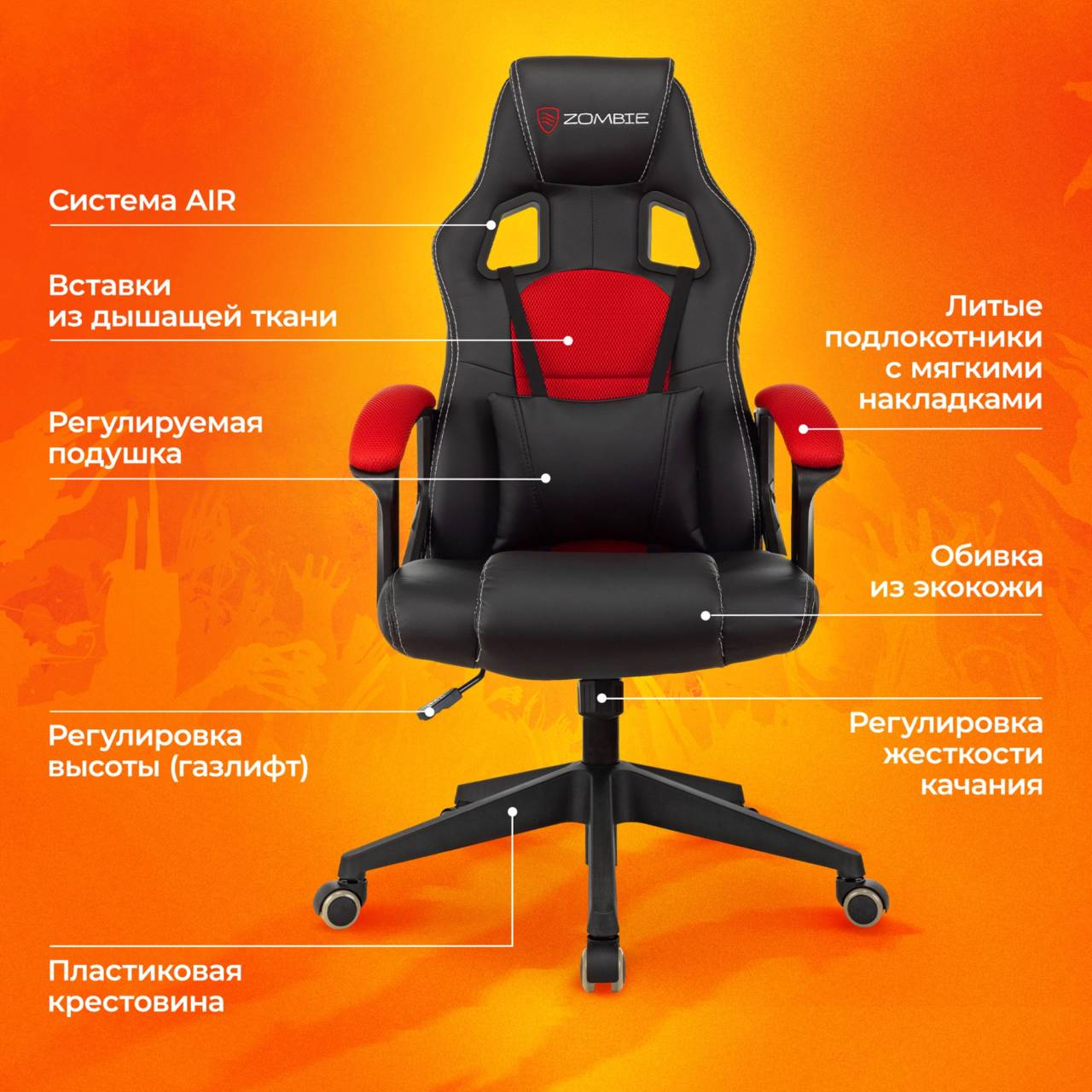 Игровое кресло Кресло игровое Arena черный/красный ткань/эко.кожа крестов. пластик (ZOMBIE ARENA RED)