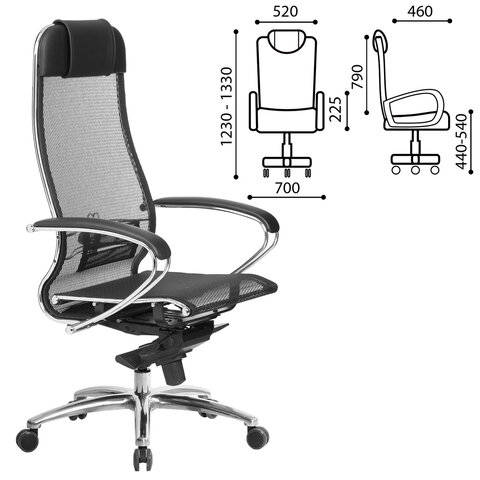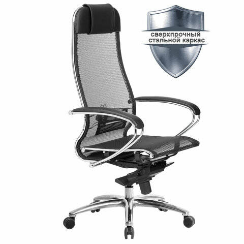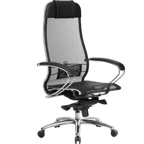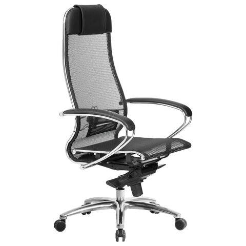 Кресло Метта офисное "SAMURAI" S-1, сверхпрочная ткань-сетка, черное