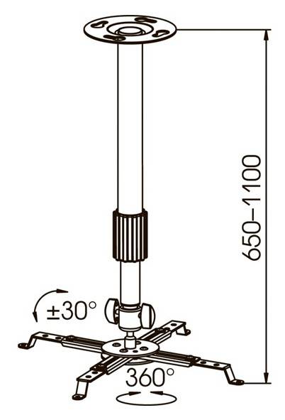 Кронштейн для проекторов Kromax PROJECTOR-300 white, Кр. стал. пот. для проек. max 10 кг, 2 ст св., нак. 30°, пов. 360°, от пот. 125 мм. [4607161202999]